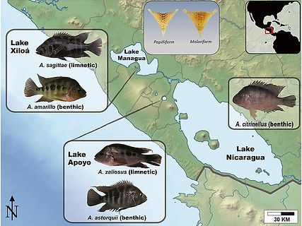 A especiação simpátrica também pode ser motivada por seleção sexual. Indícios sobre isso foram encontrados em peixes ciclídeos em um dos importantes polos de especiação animal da Terra: o lago Vitória, no leste da África. Esse lago já foi o habitat de 600 espécies de peixes ciclídeos. Dados genéticos indicam que essas espécies se originaram nos últimos 100.000 anos de um pequeno número de espécies colonizadoras oriundas de rios e lagos de outras regiões. Como tantas espécies – mais do que o dobro do número de peixes de água-doce conhecidos em toda a Europa – se originaram em um único lago?
